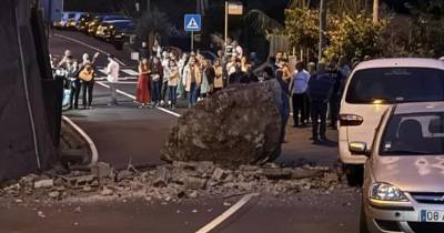 Uma carrinha de vários lugares ficou destruída, durante a noite de sábado, na sequência da queda de uma pedra de grandes dimensões no Curral das Freiras....