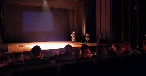 Com uma abordagem cénica contemporânea, ‘A Viagem Artificial’ cruza literatura, teatro e tecnologia, entendendo a insularidade como uma condição cultural, social e política em permanente construção. Concebida para salas de espetáculo, a produção procura oferecer uma experiência artística ajustada tanto a contextos culturais como educativos.