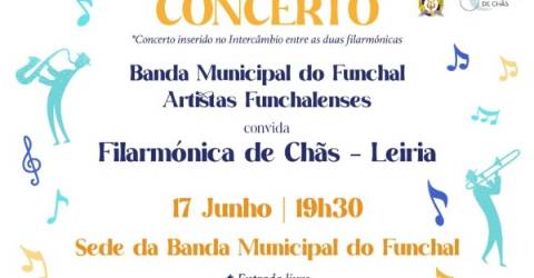 No próximo dia 17 de junho, a Banda Municipal do Funchal - Artistas Funchalenses irá subir ao palco, na sua sede, para um concerto inserido no intercâmbio que está a ser promovido com a Filarmónica de Chãs (Leiria).