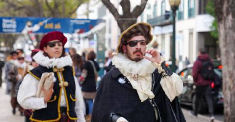 Vinte Camões, do Teatro Bolo do Caco, invadiram o foyer do TMBD, misturando-se com as entidades oficiais e demais convidados.