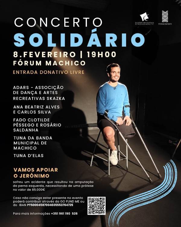 Decorre, no próximo dia 8, pelas 19h00, com entrada livre, mediante donativo livre, um Concerto Solidário, no Fórum Machico, destinado a apoiar Jerónimo Fernandes que, na sequência de uma acidente, teve de amputar uma das pernas.