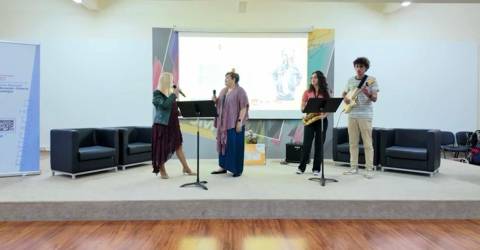 Esta manhã, na sessão de abertura do Encontro Regional de Clubes Europeus, que teve lugar na Escola Secundária Jaime Moniz, a cantora Vânia Fernandes, também professora de canto, interpretou ‘Senhora do Mar’, tema que os portugueses escolheram para o Festival da Eurovisão, de 2008.