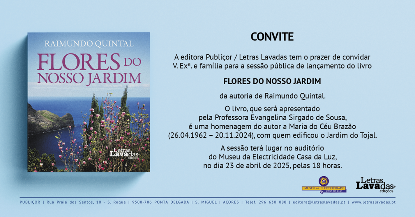 Na próxima quarta-feira, 23 de abril, às 18h00, será apresentado no auditório do Museu de Eletricidade – Casa da Luz o livro 0Flores do Nosso Jardim’, da autoria de Raimundo Quintal, com a chancela da Editora Letras Lavadas.