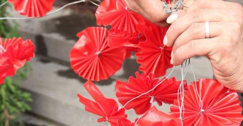 Aquele espaço será, depois, ornamentado com as flores feitas por toda a comunidade, e a instalação ficará patente ao público até 26 de maio.