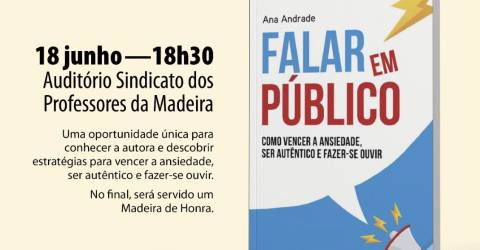 O livro ‘Falar em Público, da autoria de Ana Andrade, docente da Universidade de Direito da Católica-Porto, é apresentado amanhã, 18 de maio, no auditório do Sindicato dos Professores da Madeira (SPM), no Funchal.
