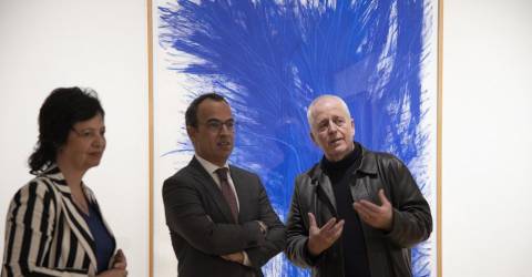 O ministro da Cultura, Pedro Adão e Silva, visitou hoje o Museu Nacional Soares dos Reis, no Porto, onde apreciou a recém-inaugurada exposição temporária ‘Teresa Gonçalves Lobo e Domingos Sequeira: um diálogo no tempo’. A visita contou com as presenças do curador da exposição, Bernardo Pinto de Almeida, assim como da artista madeirense Teresa Gonçalves Lobo, que vê aqui as suas obras em diálogo com o trabalho de Domingos Sequeira.
