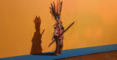 A mostra apresenta pinturas sobre tela que exploram o conceito de figuração e máscaras, refletindo sobre a relação entre identidade, ritual e perceção do mundo. Segundo o artista, “temos aqui: pinturas sobre tela, ou seja, novas coisas velhas. Figuras de costas, vazias ou mascaradas. Porque: só no ritual, no teatro ou no Carnaval as roupas não são fuga.”
