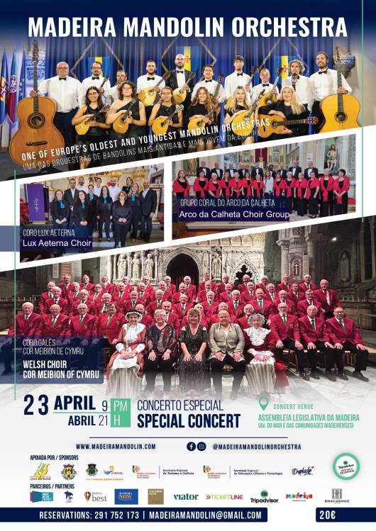 A Orquestra de Bandolins da Madeira apresentará, a 23 de abril, um concerto especial com a participação do Coro de Gales - Cor Meibion de Cymru, o Grupo Coral do Arco da Calheta e o Coro Lux Aeterna.