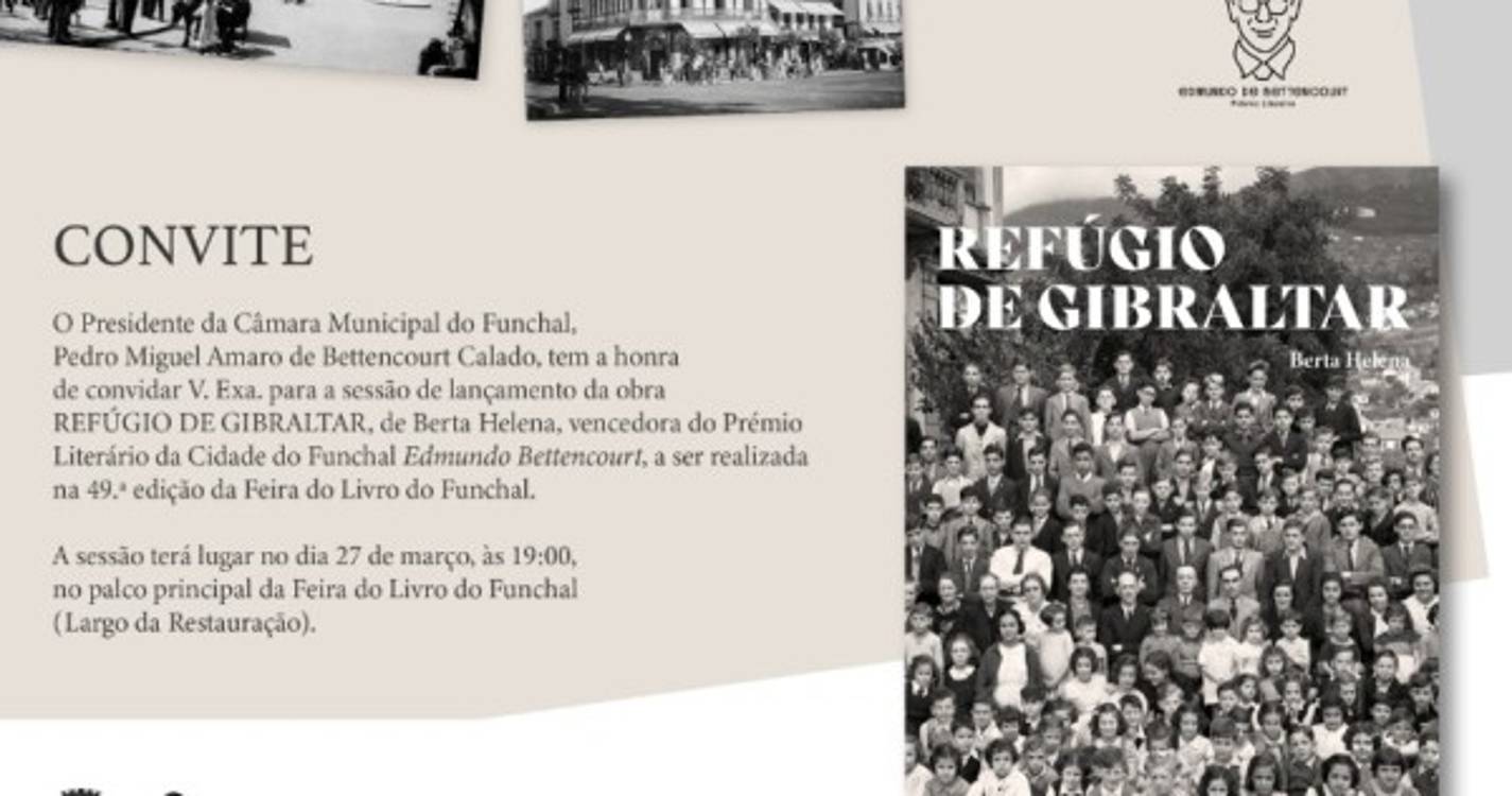 Acontece, esta segunda-feira, às 19h00, no Largo da Restauração, a sessão de lançamento da obra 'Refúgio de Gibraltar' de Berta Helena, no âmbito da Feira do Livro do Funchal.