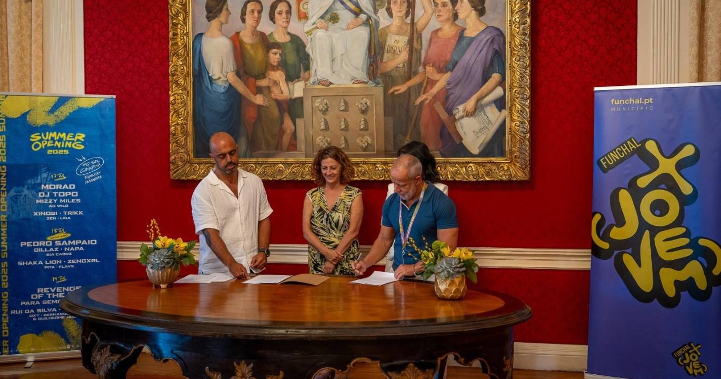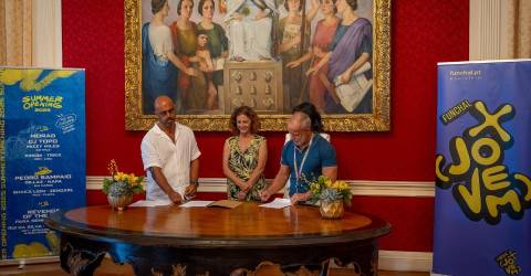 Decorreu hoje, no Salão Nobre da Câmara Municipal do Funchal, a assinatura do protocolo de cooperação entre a autarquia e a empresa Sons de Pérola, responsável pela organização do Summer Opening Festival.