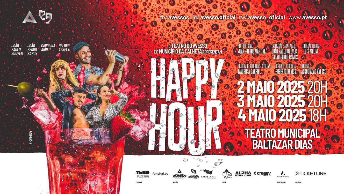 O Teatro do Avesso sobe ao palco do Teatro Municipal Baltazar Dias, no Funchal, com a comédia ‘Happy Hour’ nos dias 2, 3 e 4 de Maio.