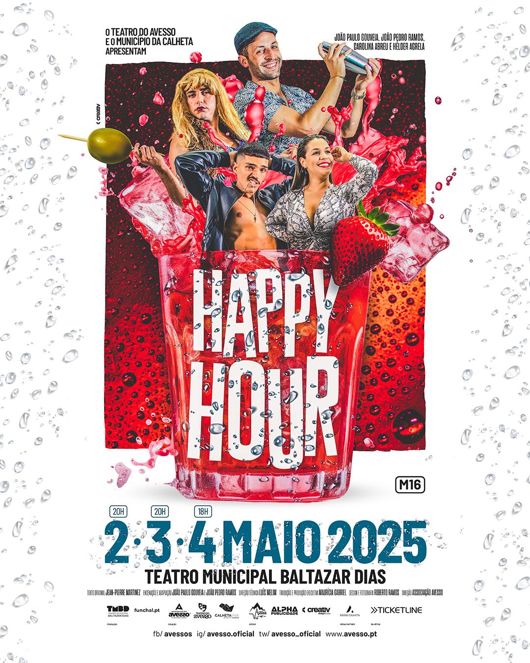 ‘Happy Hour’ é a 20.ª produção do Teatro do Avesso, tendo se estreado a 27 de junho de 2024 no MUDAS, na Calheta, no Centro Cultural John dos Passos, na Ponta do Sol, e mais recentemente na Fábrica da Criatividade, em Castelo Branco. A peça chega agora ao Funchal, tendo já sido assistida por mais de um milhar de pessoas.