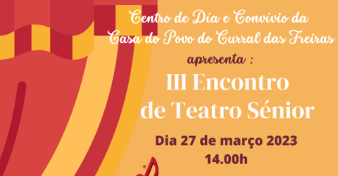A Casa do Povo do Curral das Freiras organiza, pela terceira vez, o Encontro de Teatro Sénior, a acontecer amanhã, dia 27 de março, a partir das 14h00, no Auditório do Centro Cívico do Curral das Freiras, em celebração do Dia Mundial do Teatro.