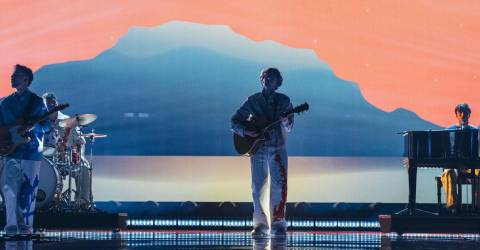 Os NAPA, representantes de Portugal no Festival Eurovisão da Canção, realizaram esta quarta-feira o seu segundo ensaio no palco do St. Jakobshalle, em Basileia, Suíça. Alma Bengtsson/Sarah Louise/EBU