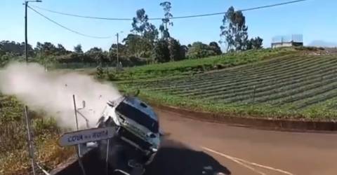 O aparatoso despiste, captado em direto pela transmissão da StreamMadeira, deixou bastante danificado o carro do piloto espanhol.