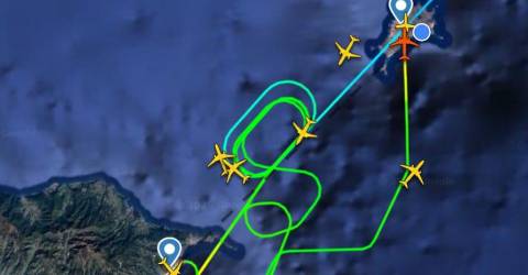 Antes de rumar à Ilha Dourada, a aeronave sobrevoou a zona este da Madeira durante alguns minutos, à espera de uma oportunidade para se fazer à pista, mas o vento forte que se faz sentir em Santa Cruz e Machico não permitiu a aterragem.