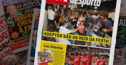 A Capa Desportiva do seu Jornal destaca ainda a 3.ª pré-eliminatória da Champions. Luz intensa. Três golos de Gonçalo Ramos e um de Enzo Fernandes dão ao Benfica uma vantagem confortável (4-1) para o encontro da 2.ª mão, na Dinamarca, frente ao Midtjylland. O jogo marcou ainda a estreia de Henrique Araújo nas provas europeias.