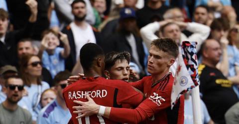 Contra todas as expectativas, os ‘red devils’, que eram os ‘outsiders’, bateram o campeão City, que teve Bernardo Silva a titular e Matheus Nunes e Rúben Dias sem saírem do banco, num jogo que teve como heróis os ‘miúdos’ Garnacho e Mainoo.