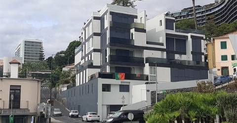 Nas varandas da habitação do capitão da seleção nacional estão já a postos várias bandeiras de Portugal.