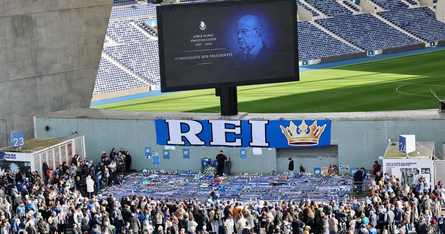 Várias centenas de adeptos acorreram, ao longo da manhã de hoje, às imediações do Estádio do Dragão para prestar tributo ao ex-presidente do FC Porto Jorge Nuno Pinto da Costa, que morreu no sábado, aos 87 anos.