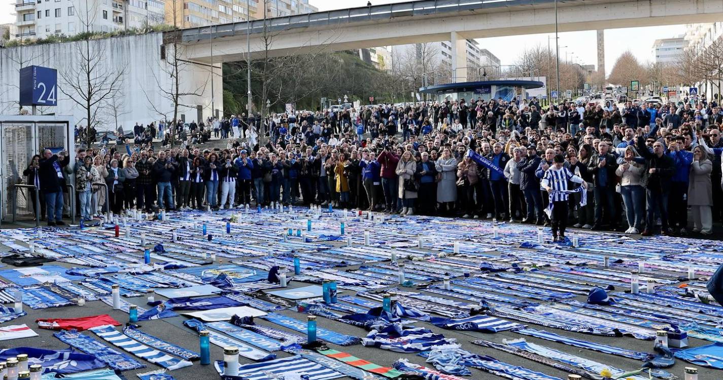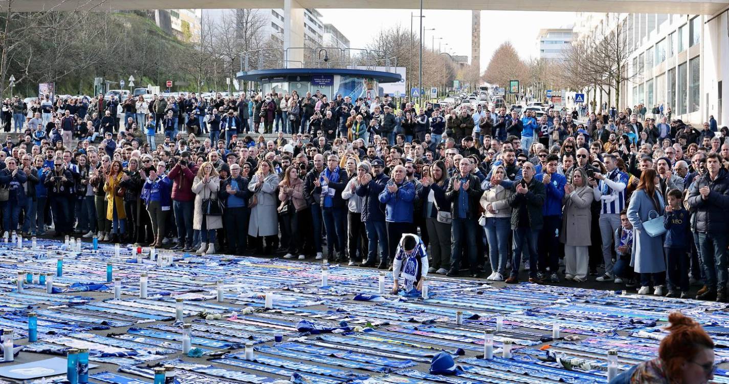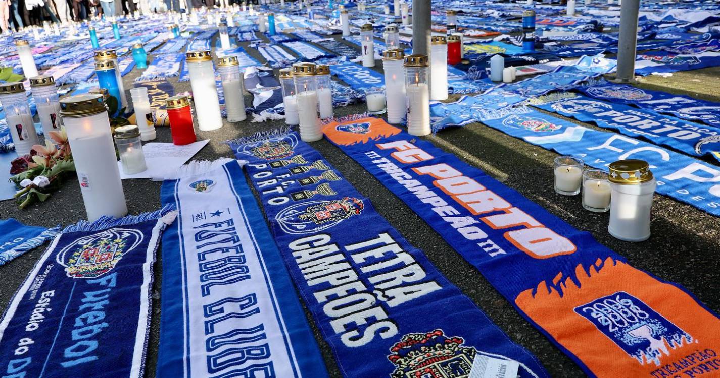 Apesar da chuva, multiplicaram-se os portistas que se têm aglomerado entre as portas 23 e 24 do recinto, deixando flores e velas, mas também camisolas e cachecóis, num clima visivelmente emocionado perante a perda da figura maior do universo ‘azul e branco’.