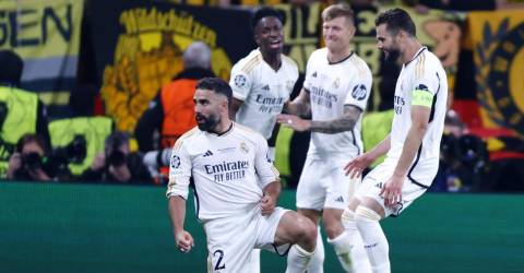 Carvajal (74 minutos) e Vinícius Júnior (83) fizeram os golos que ‘valeram’ o 15.º título da ‘Champions’ aos espanhóis, campeões europeus também em 1956, 1957, 1958, 1959, 1960, 1966, 1998, 2000, 2002, 2014, 2016, 2017, 2018 e 2022.