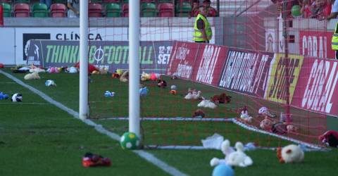 No intervalo do Marítimo - FC Penafiel, que está a decorrer nos Barreiros, várias centenas de peluches trazidos pelos sócios e adeptos verde-rubros foram atirados desde as bancadas para o recinto de jogo, gerando um momento especial e cheio de alegria, como se pode constatar na galerias de fotos acima.