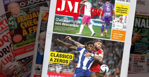 A manchete da capa do Desporto de hoje dá destaque ao clássico de ontem que opôs o FC Porto ao SL Benfica. Os dois grandes do futebol português não foram além do empate a zero.