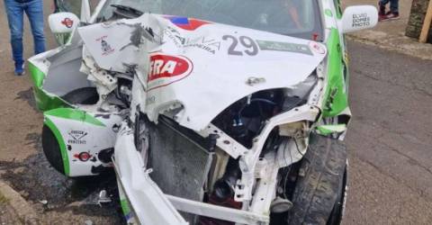Um aparatoso despiste de Márcio Ferreira na terceira classificativa - a primeira passagem por São João -, está a atrasar a quinta classificativa, que consiste na segunda passagem pelo local.