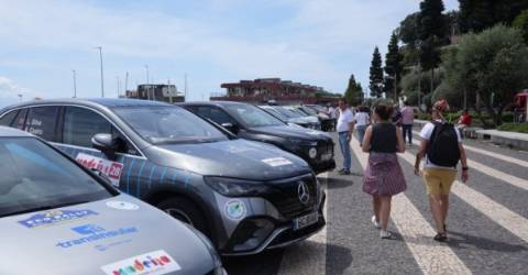 No local de partida concentram-se algumas pessoas, entre forasteiros e locais, curiosos com os veículos elétricos.