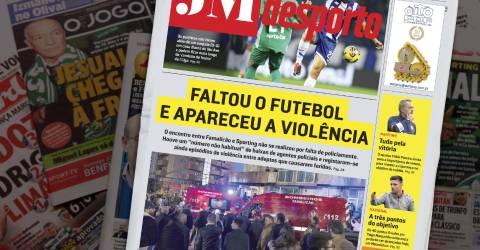 O encontro entre Famalicão e Sporting não se realizou por falta de policiamento. Houve um “número não habitual” de baixas de agentes policiais e registaram-se ainda episódios de violência. entre adeptos, com feridos. ‘Faltou futebol e apareceu violência’ é a manchete da capa de desporto do JM.