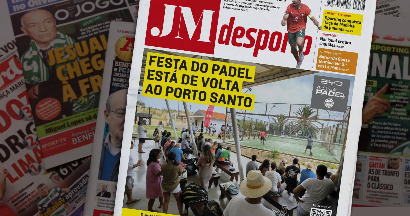 A capa do Desporto de hoje do JM é dominada pela festa do padel que regressa este ano ao Porto Santo.