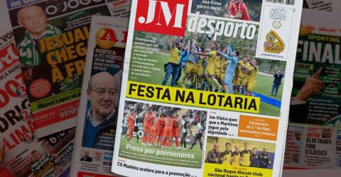 ”Águia voa firme para o dérbi”; “Centenário do 1.º de Maio movimenta centenas; “São Roque discute título nacional frente ao Sporting”; e “CS Madeira acelera para a promoção” compõem as demais chamadas da capa do Desporto do JM.