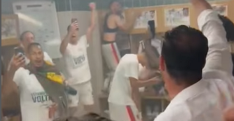 No balneário, o ambiente foi de festa, conforme mostra um vídeo divulgado por Patrice Evra, sócio do grupo norte-americano My Football Club (MYFC), que comprou 90% do capital social do clube da Reboleira.