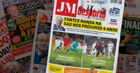 A Capa Desportiva do seu Jornal destaca ainda a Liga dos Campeões. Bayern apaga estrelas de Paris e Milan resiste em Londres.