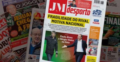 A Capa Desportiva do seu Jornal destaca ainda o Marítimo. Paulo Alves e Sérgio Vieira na lista. O atual treinador do Estrela da Amadora, ‘carrasco’ verde-rubro, é o preferido para suceder a José Gomes no comando técnico. Mas Paulo Alves, campeão pelo Moreirense, também é hipótese.