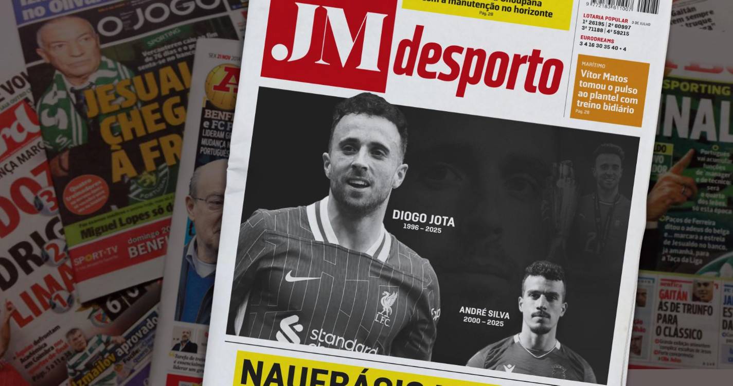 Capa preta a assinalar a morte de Diogo Jota e do irmão André Silva, com destaque para o naufrágio na Suíça. Portugal foi goleado ontem, na estreia no Europeu Feminino, contra a Espanha. Golos madrugadores castigaram as ‘navegadoras’.