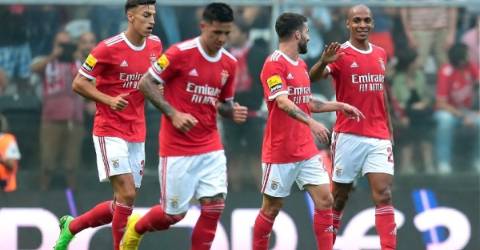 O defesa central brasileiro Morato, aos 30 minutos, e o médio João Mário, aos 67 e 82, o segundo na conversão de uma grande penalidade, marcaram os golos dos ‘encarnados’, 100% vitoriosos na presente temporada.