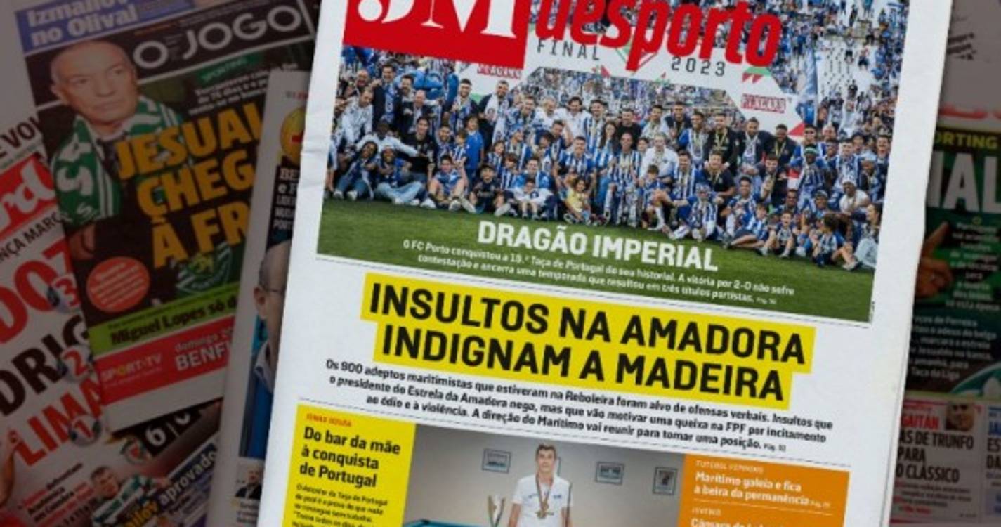 A capa do Desporto traz para a manchete os insultos de que os 900 adeptos maritimistas foram alvo na Reboleira. Ofensas verbais que o presidente do Estrela da Amadora nega, mas que vão motivar uma queixa na FPF por incitamento ao ódio e à violência. A direção do Marítimo vai reunir para tomar uma posição.