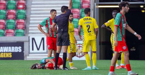 Veja o lance que originou a expulsão de João Aurélio na final do Torneio Autonomia aos 35 minutos e que pode determinar a ausência do futebolista da jornada inaugural da I Liga, frente ao AVS, por castigo.