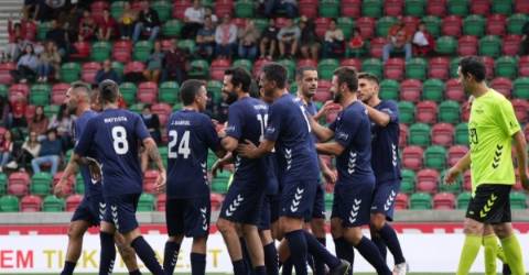 Quando está decorrida a primeira parte do jogo solidário Joga Pelas Crianças, no Estádio do Marítimo, o marcador regista um empate a duas bolas.