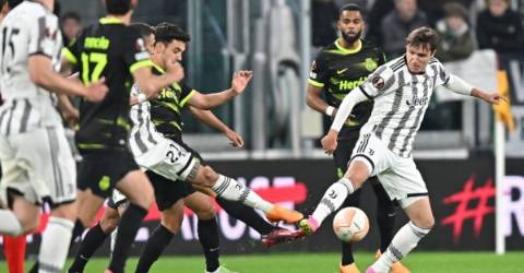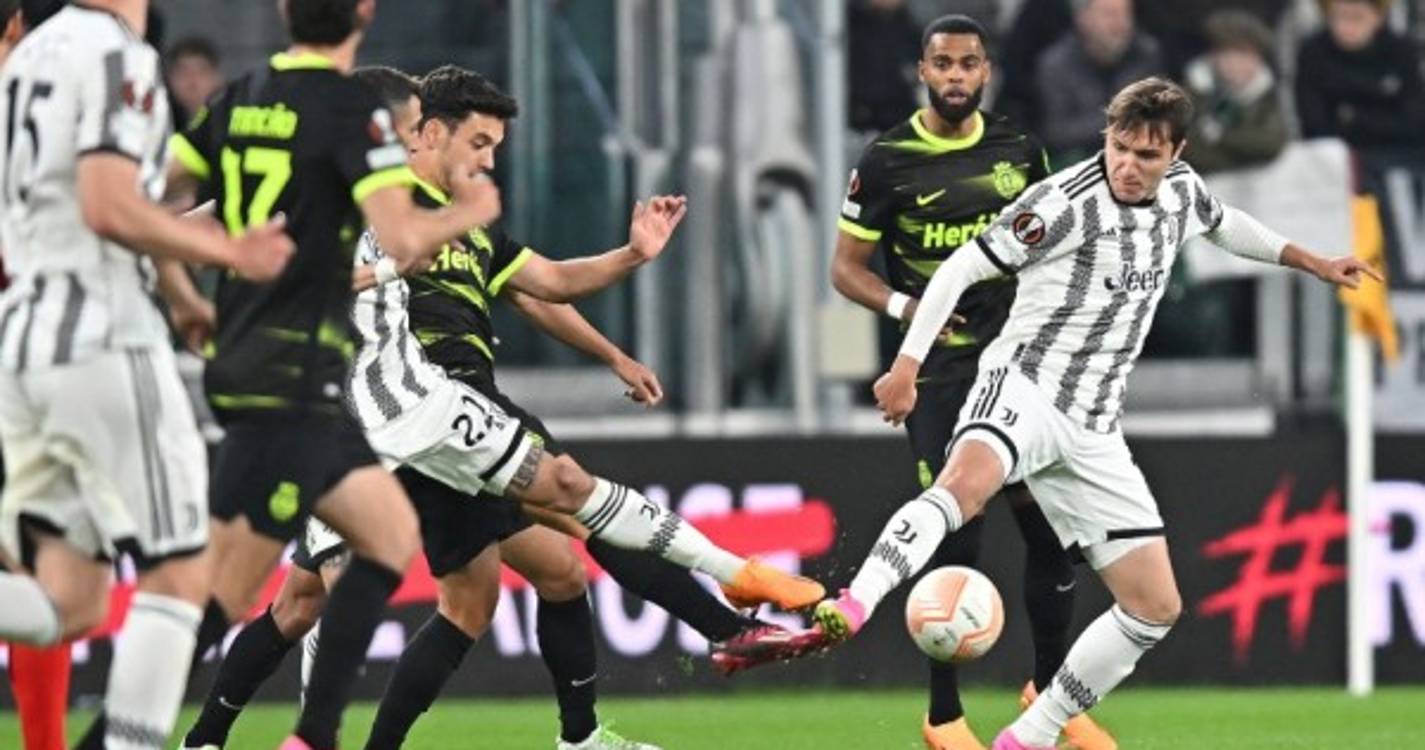 A Juventus venceu o Sporting por 1-0 no jogo da primeira mão dos quartos de final da Liga Europa.