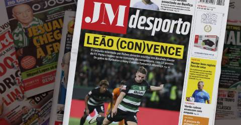 A vitória do Sporting frente ao Porto, por 2-0, faz a manchete do JM Desporto. O conjunto orientado por Rúben Amorim triunfou em Alvalade diantedo FC Porto e isolou-se no comando do campeonato, com 12 pontos.Os golos de Gyökeres e Geny Catamo fizeram a diferença. ‘Leão (con)vence’ é o título.