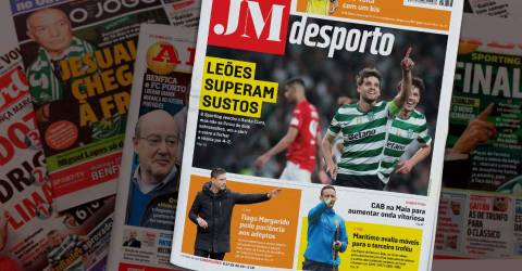 O Sporting está em evidência na capa de hoje do Desporto do JM. Apesar da vitória frente ao Santa Clara, a equipa de Alvalade não se livrou de dois sobressaltos, um a abrir e outro a fechar a vitória por 4-2.