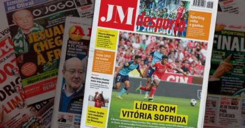 O Benfica continua a somar triunfos. Mas, ontem, sentiu muitas dificuldades para ganhar ao Vizela. Os encarnados foram para o intervalo a perder, empataram na segunda parte e só chegaram à vitória ao minuto 102 com um penálti polémico. Lider com vitória sofrida - este é o título que faz a manchete desportiva da edição deste sábado do JM.