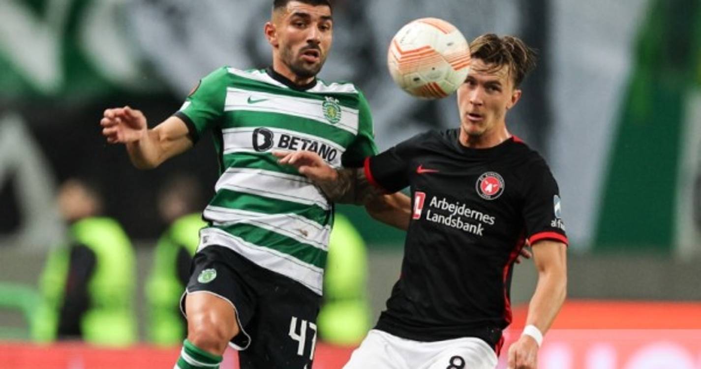 O Sporting empatou diante do Midtjylland por 1-1 no jogo da primeira mão dos 16 avos de final da Liga Europa, com Coates a fazer o golo da igualdade ao minuto 90+5'.