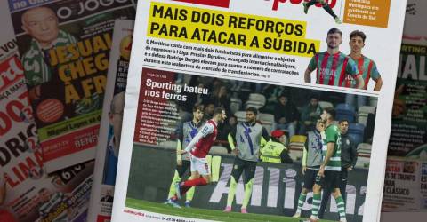 A Capa Desportiva do seu Jornal destaca a Taça da Liga. Sporting bateu nos ferros. O SC Braga está na final da Taça da Liga. Abel Ruiz entrou para apontar o único golo de um desafio dominado pelos leões, que enviaram três bolas aos ferros e desperdiçaram inúmeras oportunidades. Benfica e Estoril disputam hoje (19:45 - SIC) a outra meia-final.