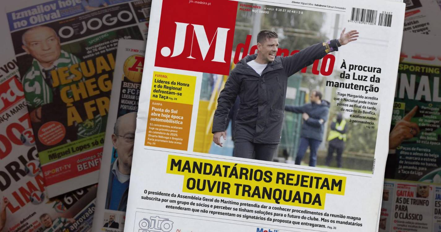 A Capa Desportiva do seu Jornal destaca ainda o Nacional. À procura da Luz da manutenção. Tiago Margarido acredita que o Nacional pode trazer pontos ao final da tarde, do recinto do Benfica, e acelerar rumo à permanência.