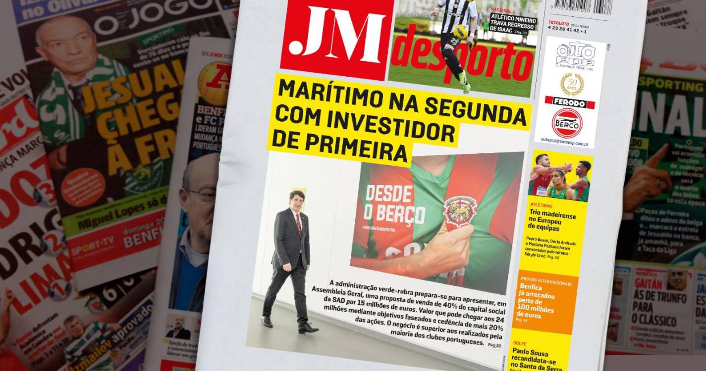 A Capa Desportiva do seu Jornal destaca ainda o Nacional. Atlético Mineiro trava regresso de Isaac.