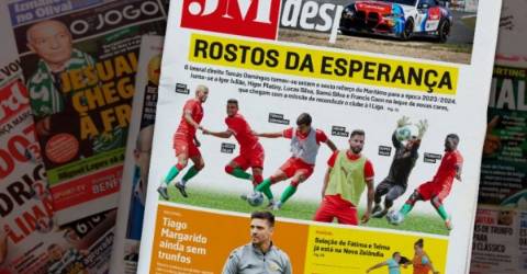 A Capa Desportiva do seu Jornal destaca ainda o Nacional. Tiago Margarido ainda sem trunfos. Técnico continua a trabalhar apenas com o reforço André Sousa incluído num grupo recheado de seniores de primeiro ano.